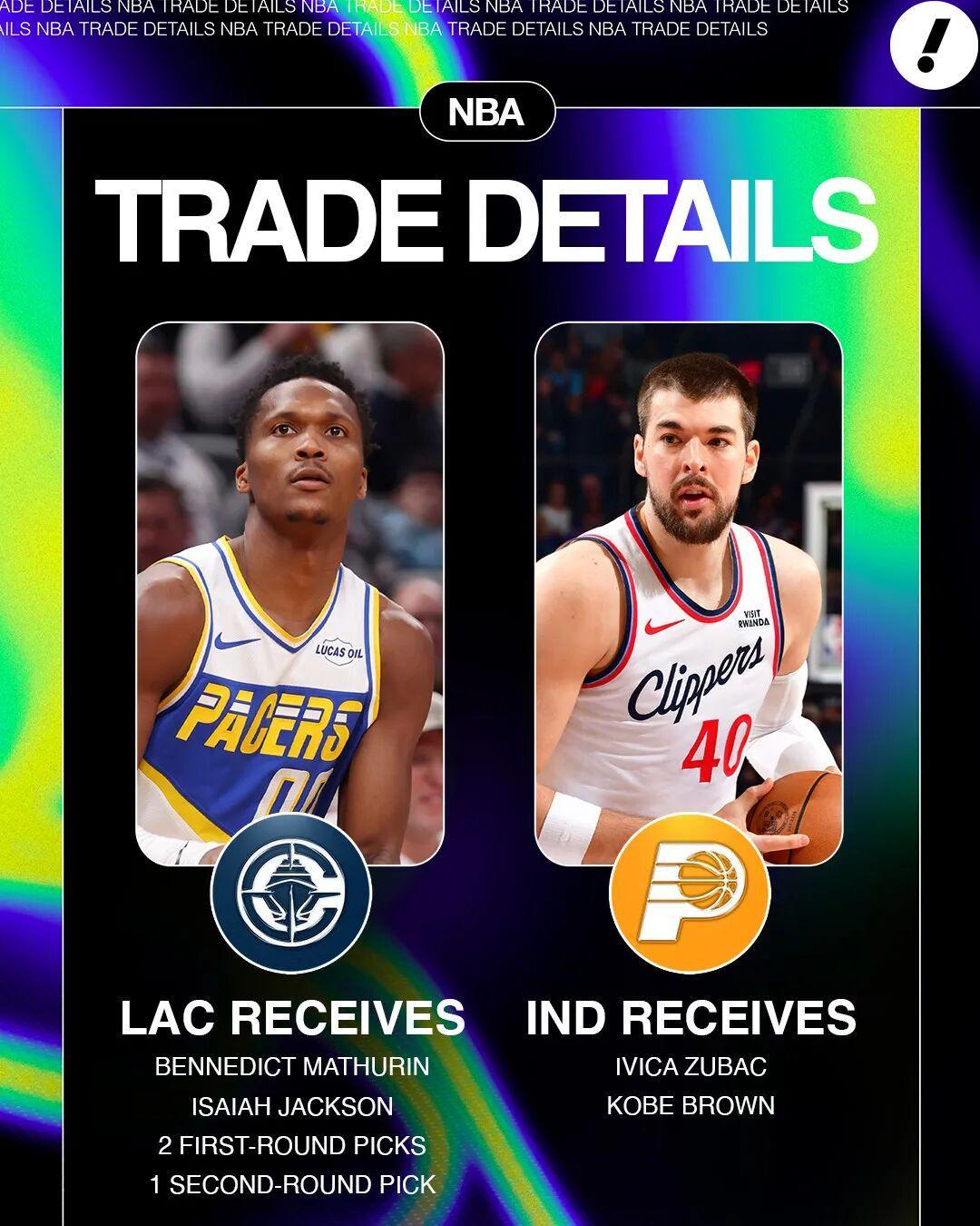 交易截止的最后一晚,快船和步行者达成了一笔交易,具体细节: